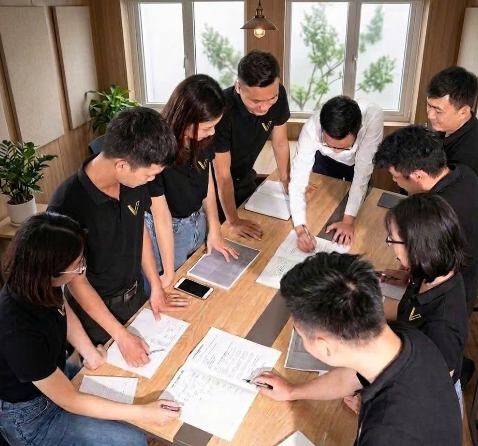 Tập thể cán bộ, công nhân viên Vinh Gia luôn tìm tòi, nghiên cứu, nâng cao năng lực để mang tới cho khách hàng những sản phẩm cao cấp, chất lượng hoàn hảo.
